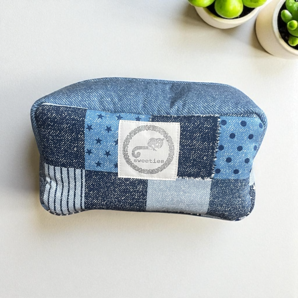 sweetiesオリジナルモモンガポーチ 『sweet box』デニムバイカラーブルー ブランケット付き(タグなし)
